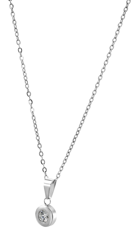 Normaler Preis €49,95 EURNormaler PreisGrundpreis / proVerkaufspreis €49,95 EUR"Léa" Akzent Halskette mit rundem Similibesatz, Edelstahl